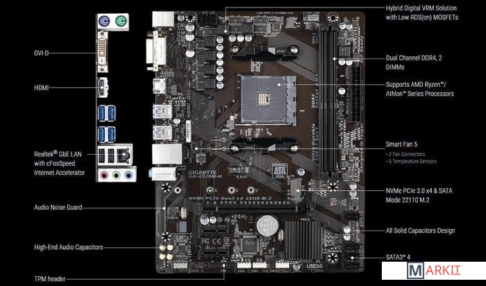 Markit » Материнские платы » Материнская плата Gigabyte GA-A320M-H (rev. 3.1)